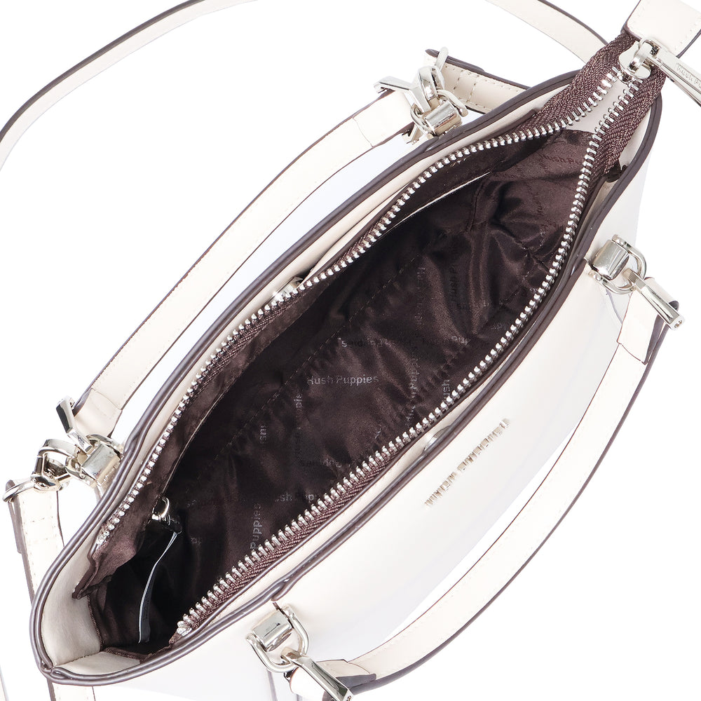 - BODY: Cowhide PU double handle bag with top zip closure