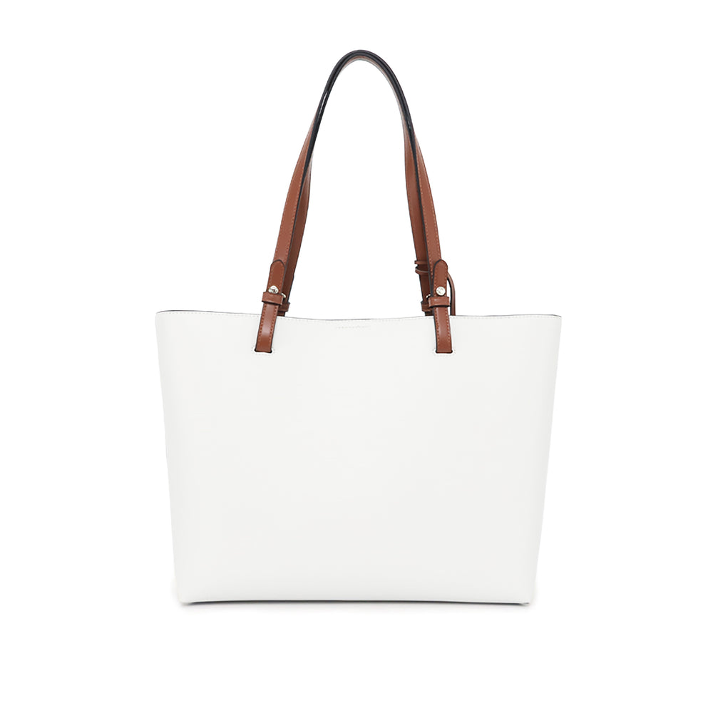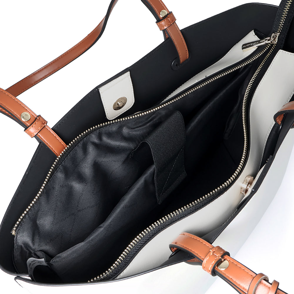 - BODY: Cowhide PU Tote bag with centre zip and 2 open compartments with magnetic snap closure