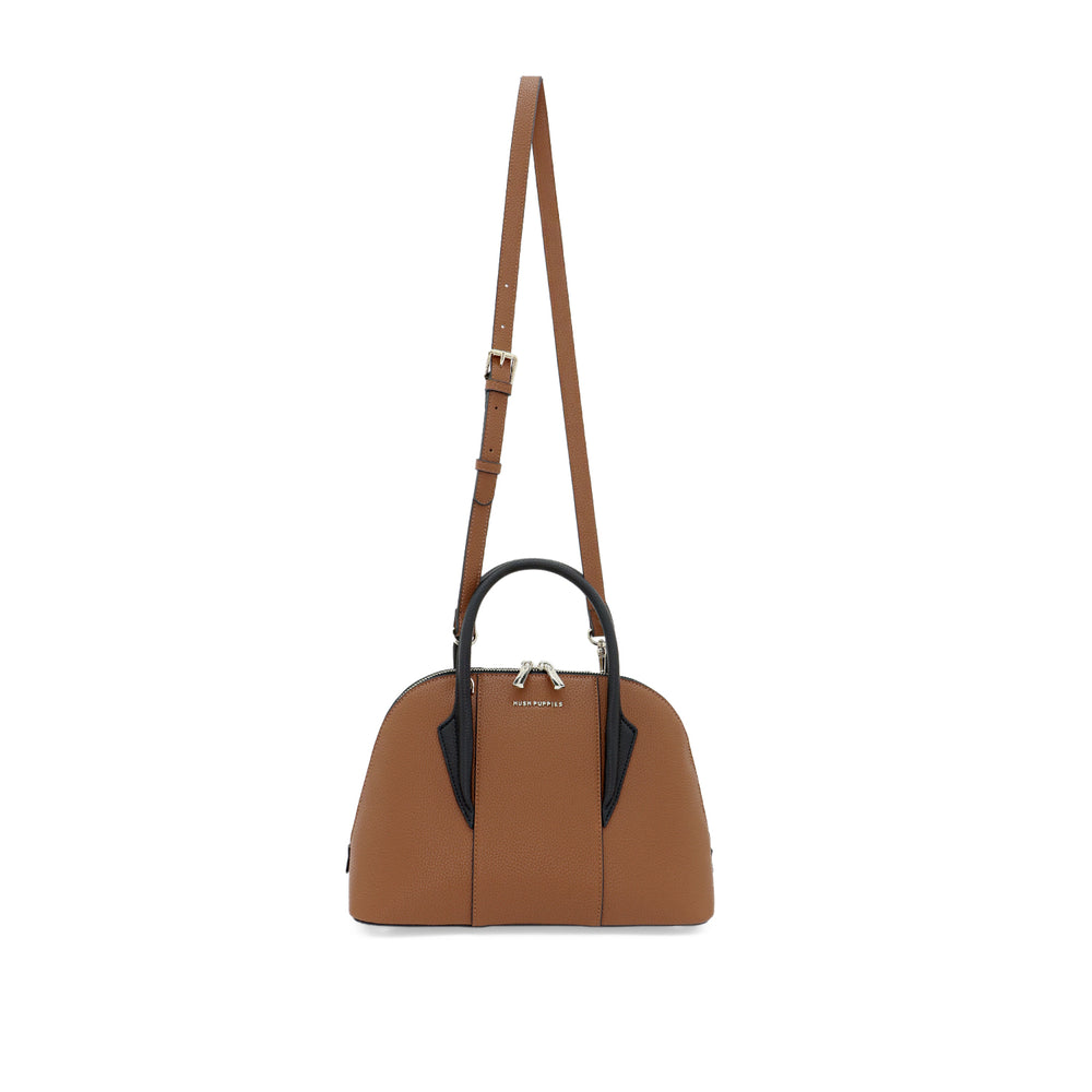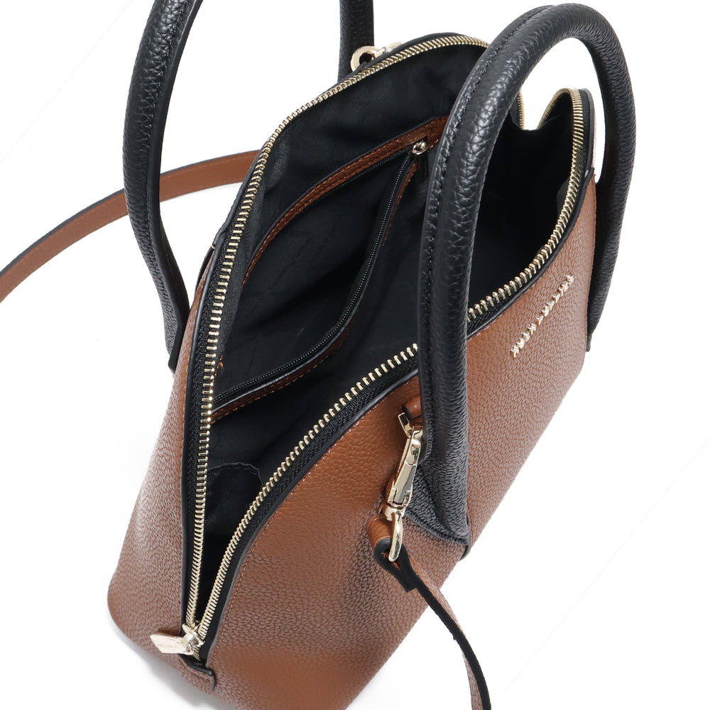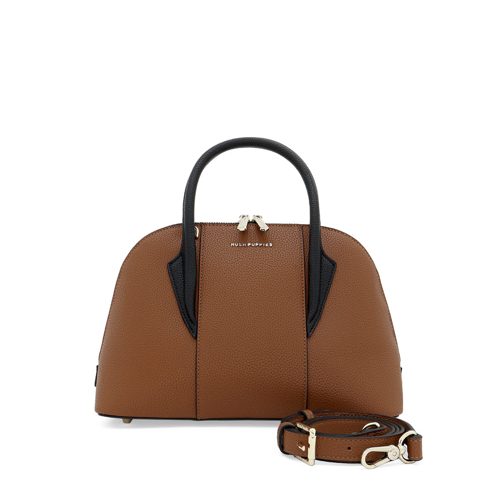 - BODY: Pebble grain PU half moon Satchel bag with top zip closure