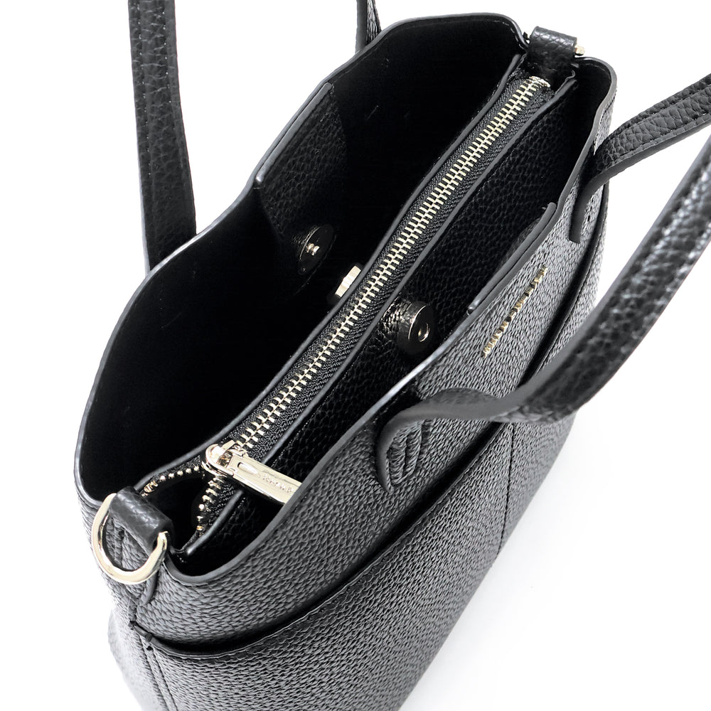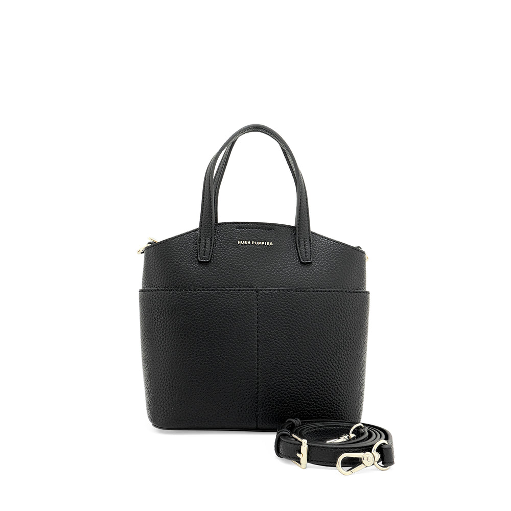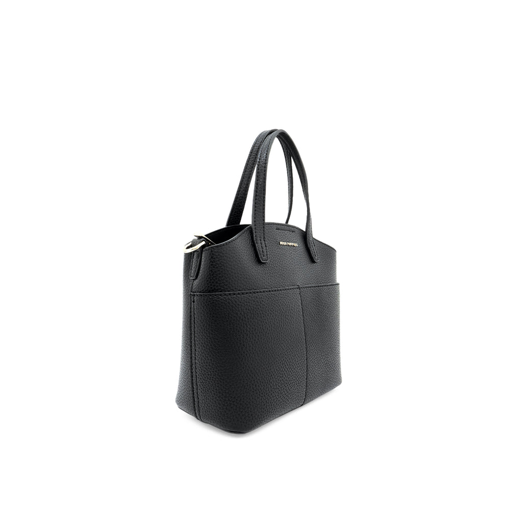 - BODY: Pebble grain PU Satchel bag with centre zip & 2 open compartments with magnetic snap closure