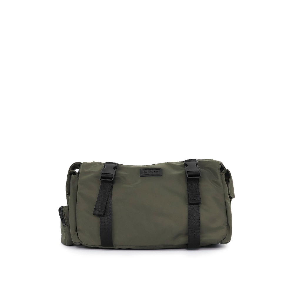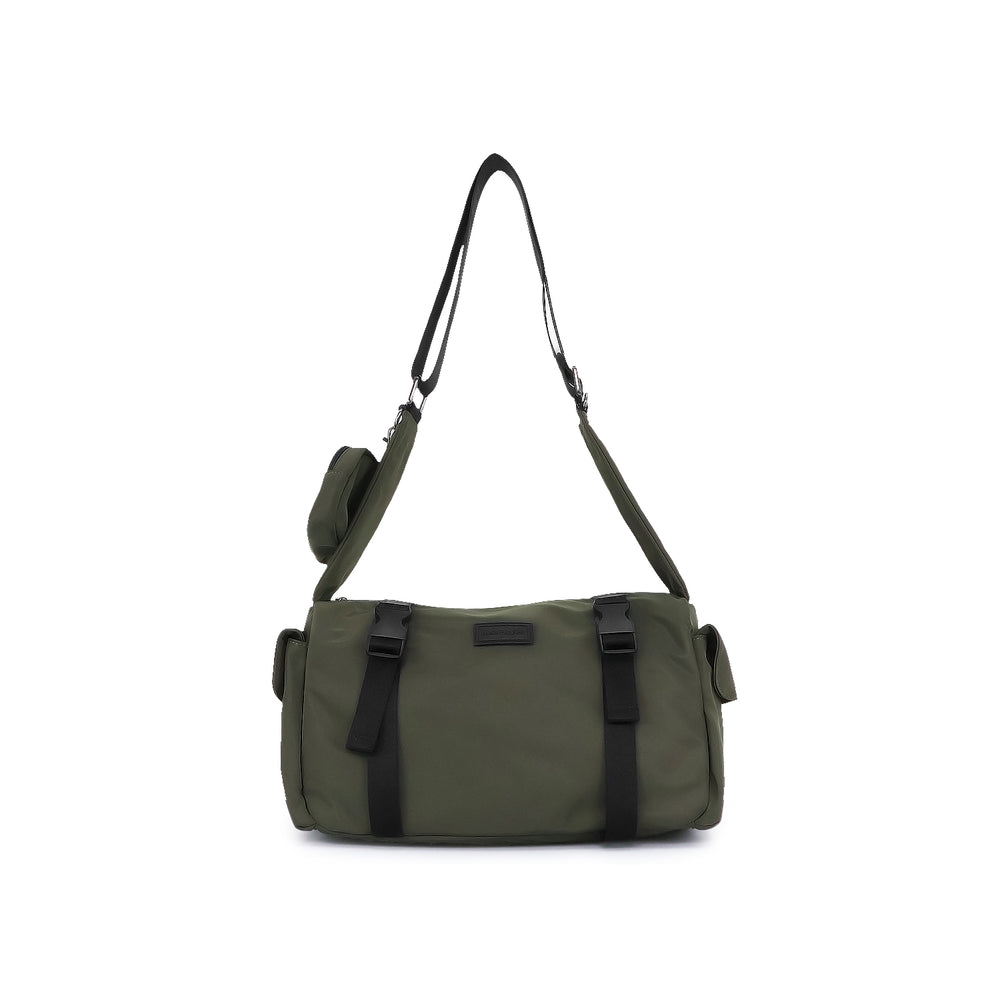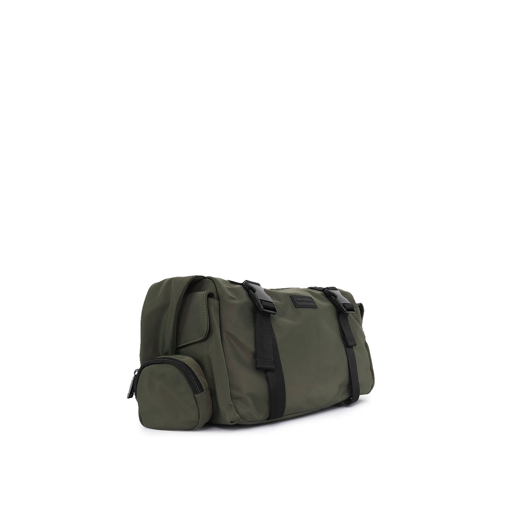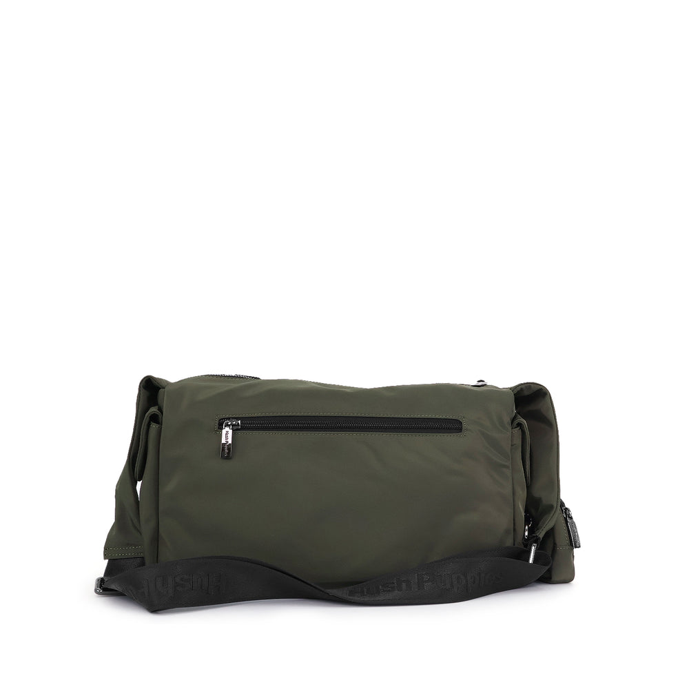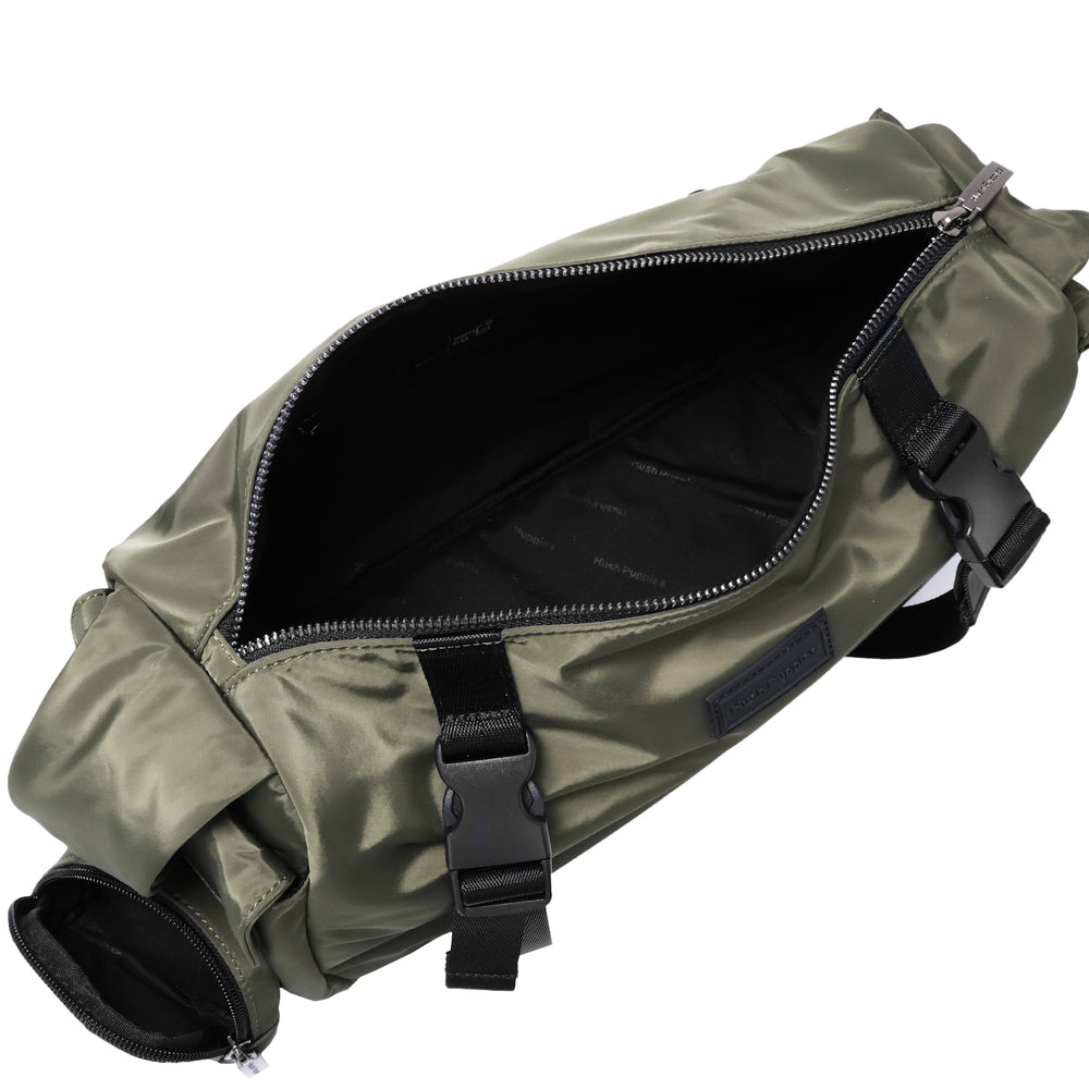 - INNER: - Zip closure - Detachable pouch - Exterior side magnetic flap and back zip pockets - Interior zip and slip pockets - RFID compartment - Adjustable shoulder strap