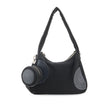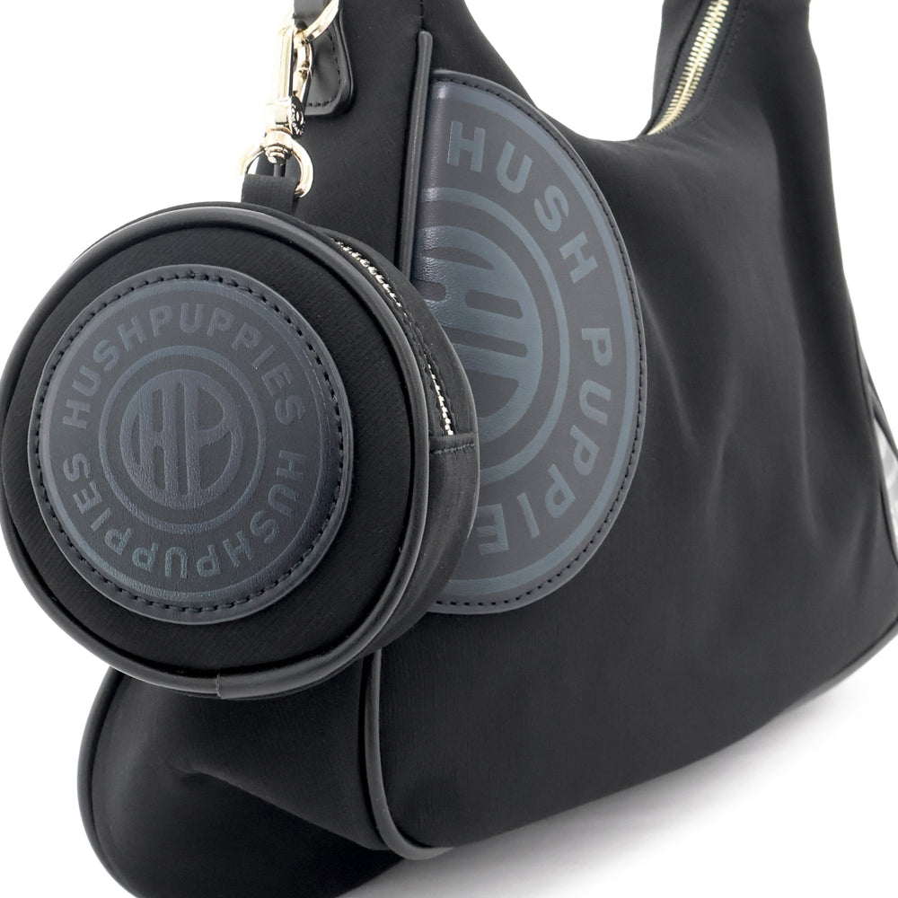 - BODY: Water resistant Nylon with tone on tone smooth grain PU Hobo bag with top zip closure