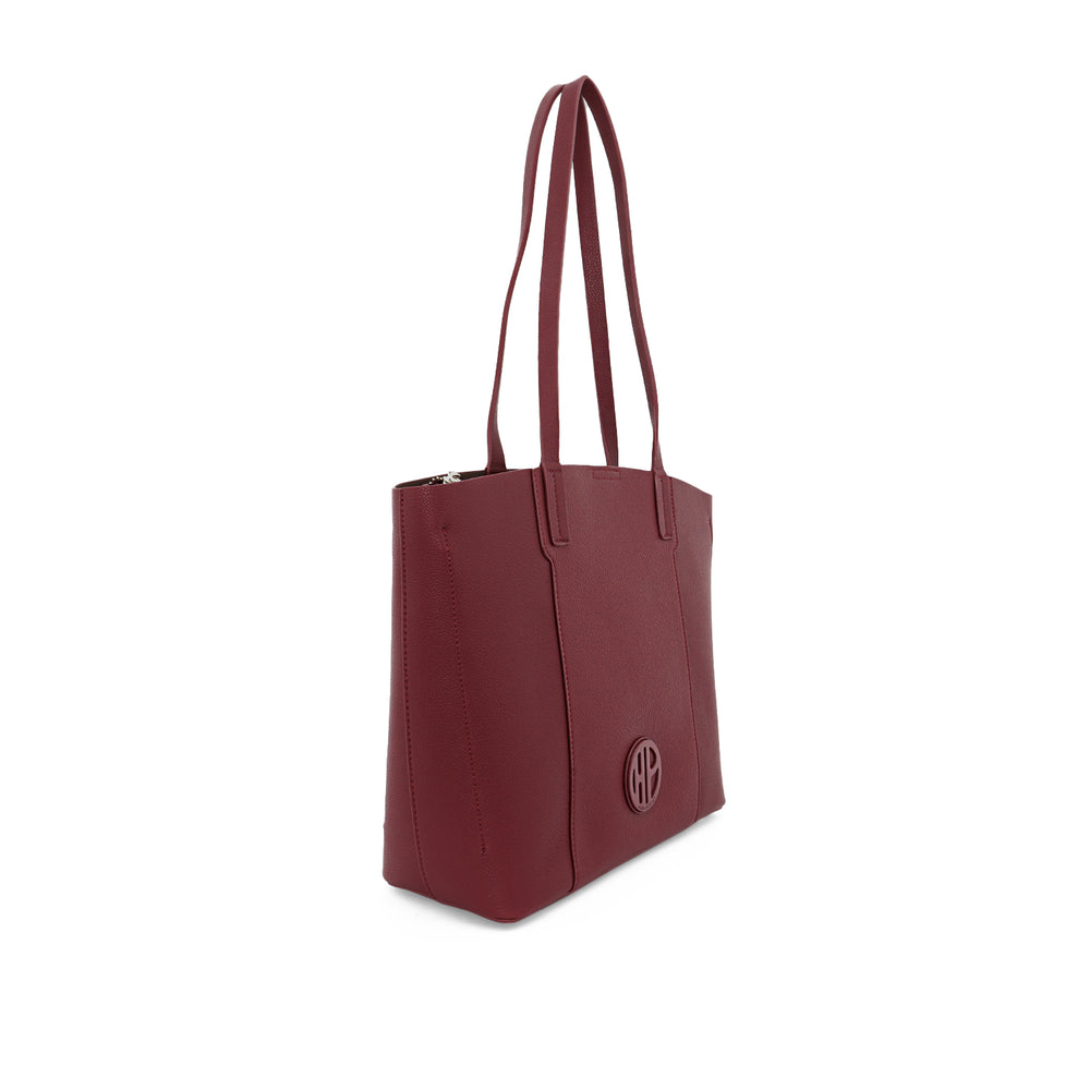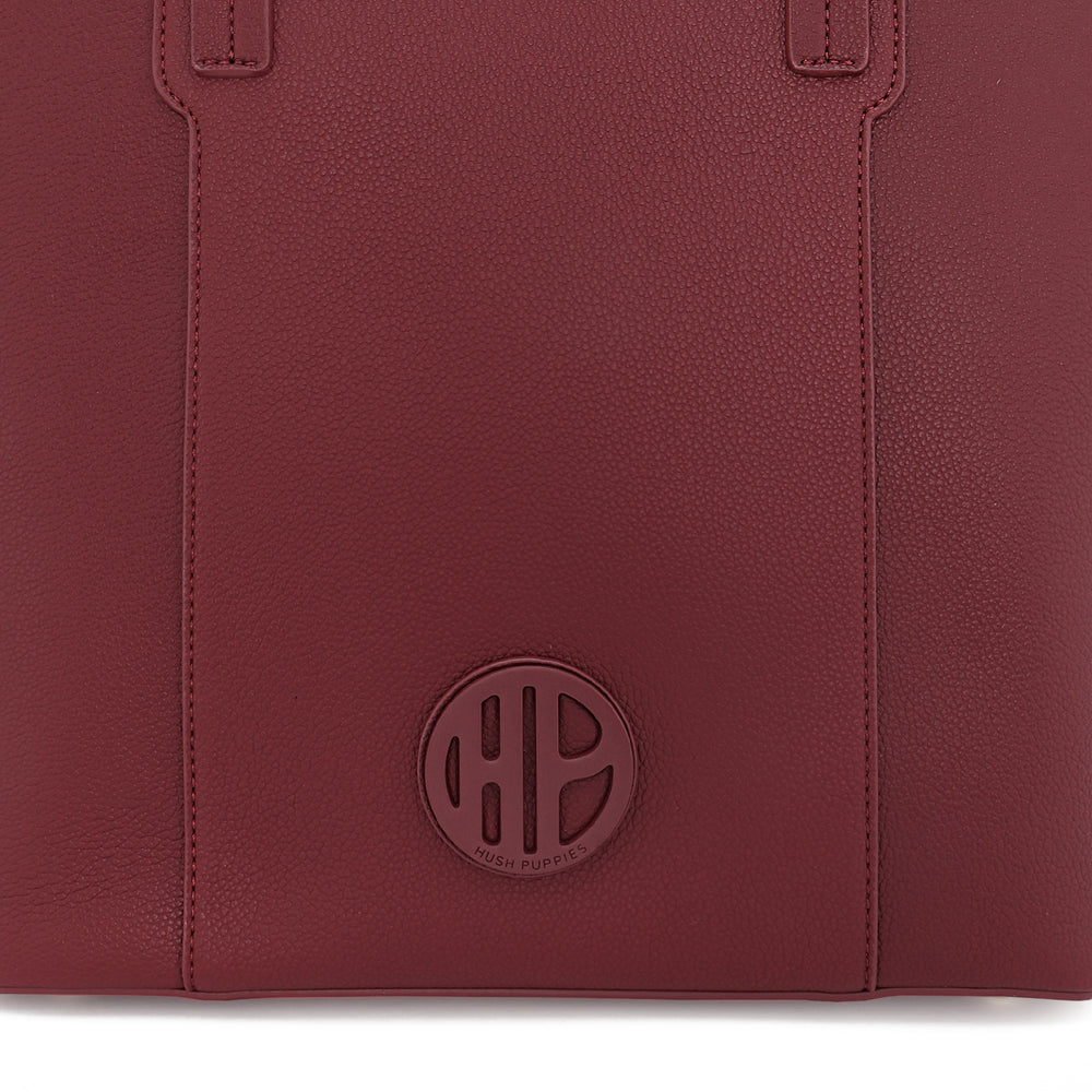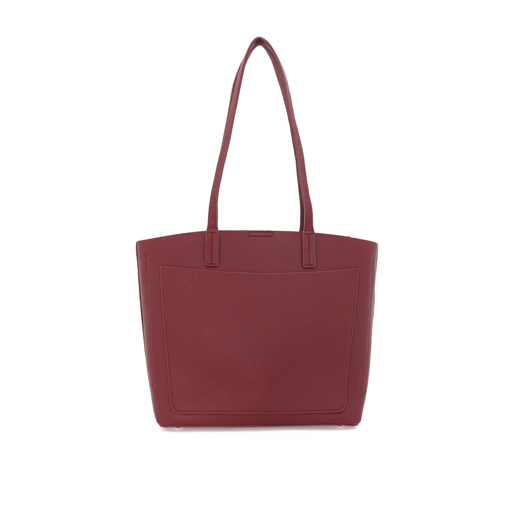 - BODY: Pebble grain PU Tote bag with centre zip & 2 open compartments with magnetic snap closure