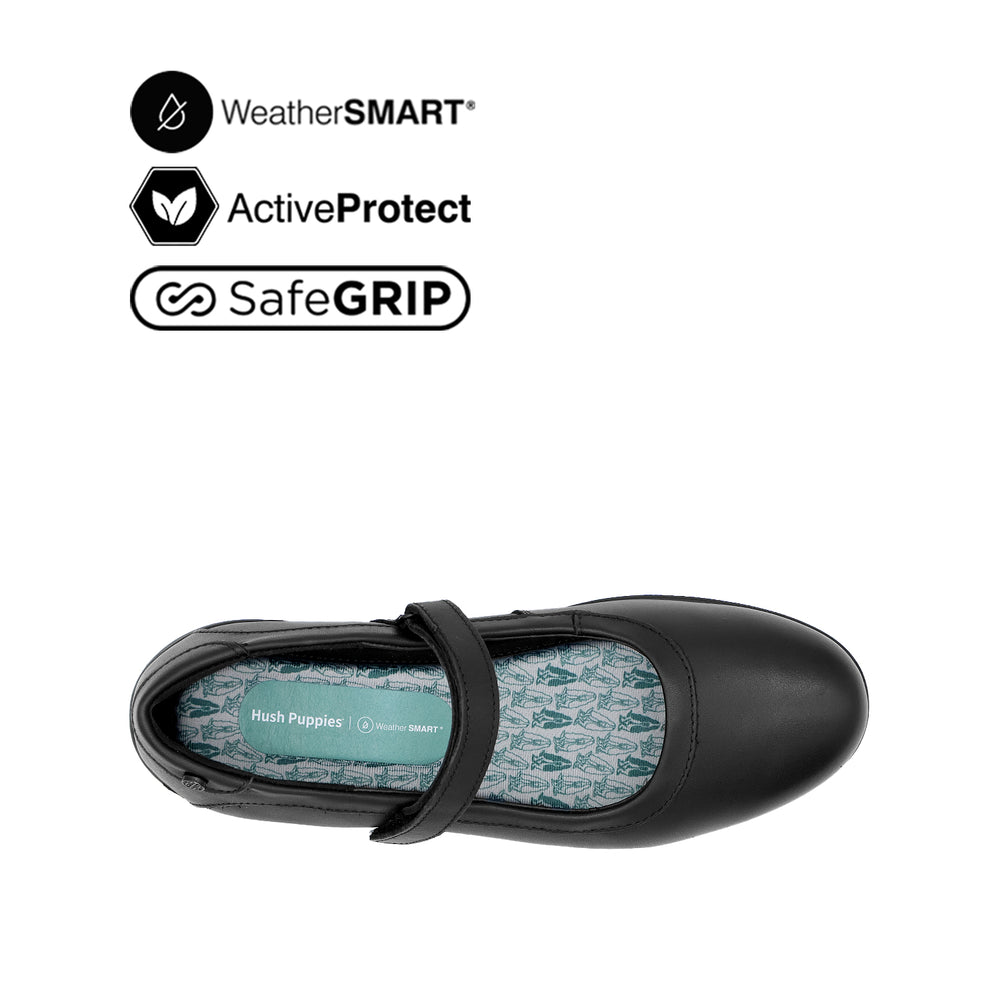 Gracie Mary Jane Plain Toe Women's Shoes - Black Leather Waterproof