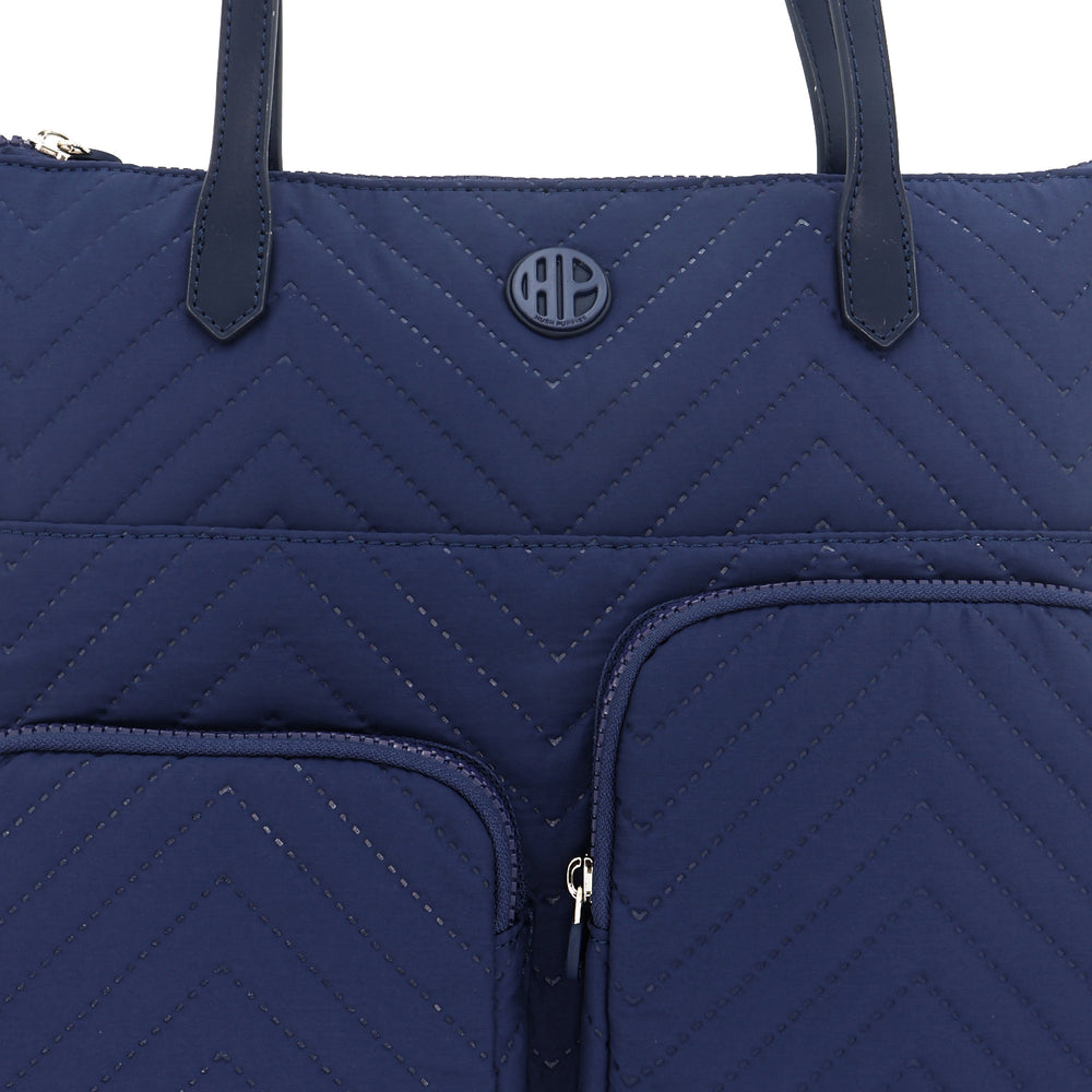• BODY: Water resistant quilted Nylon Tote bag with top zip closure