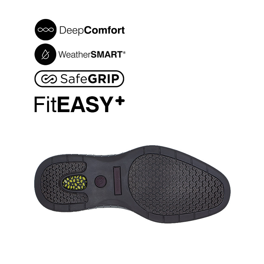 - WeatherSMART™: a combination of direct-injected outsoles and seam sealed waterproof leathers to keep feet dry without sacrificing comfort or style