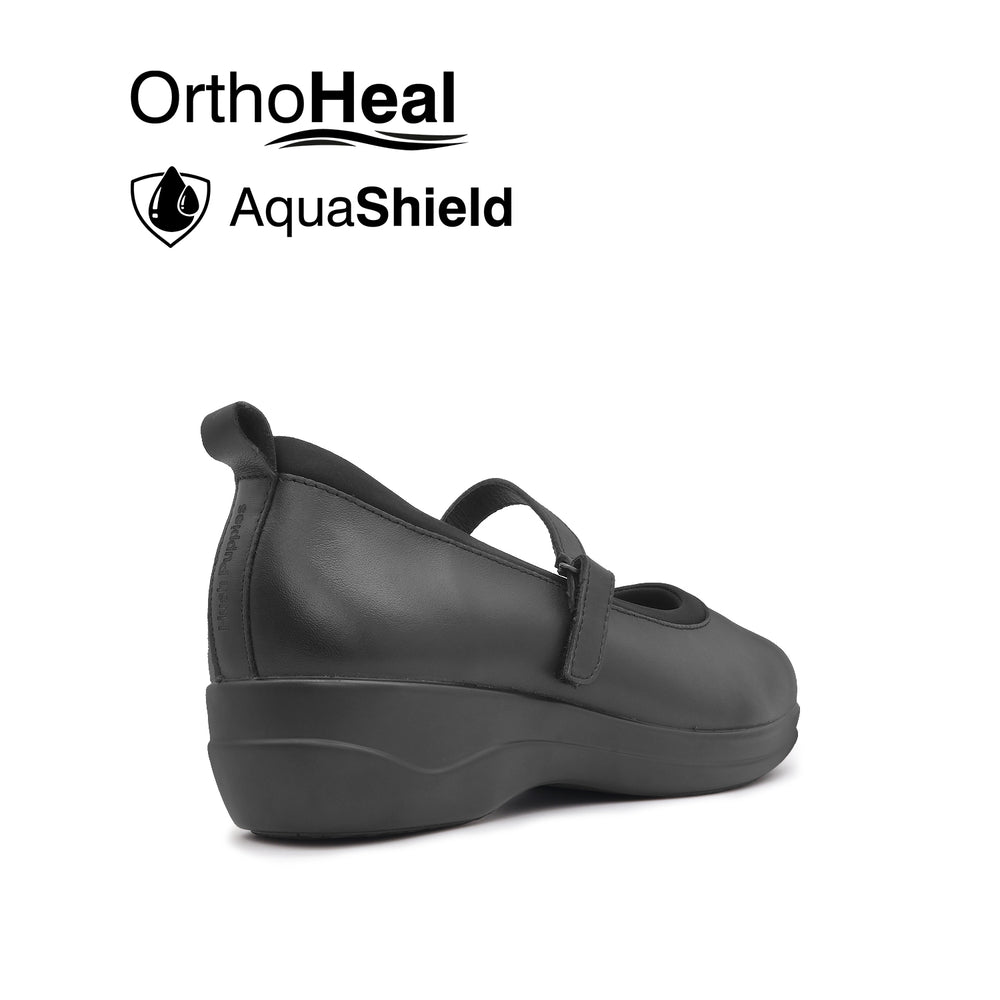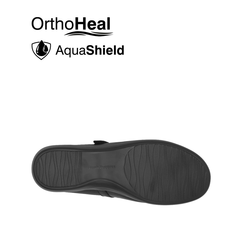• OrthoHeal: features removable orthotic insoles with anatomical arch support to improve mobility, enhance comfort and help relieve foot pain.                                                                •Aquashield: Repels water with a proprietary combination of water-resistant materials to help keep feet dry