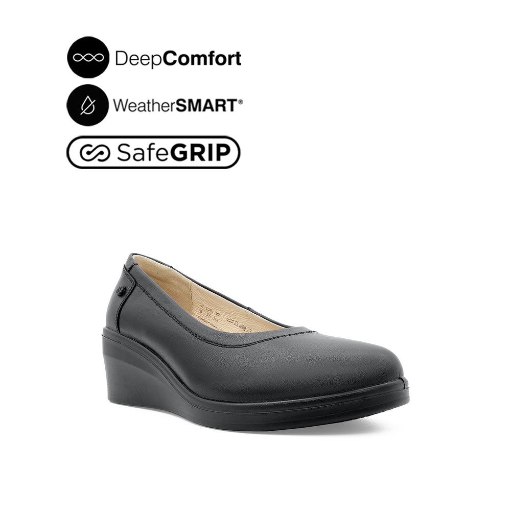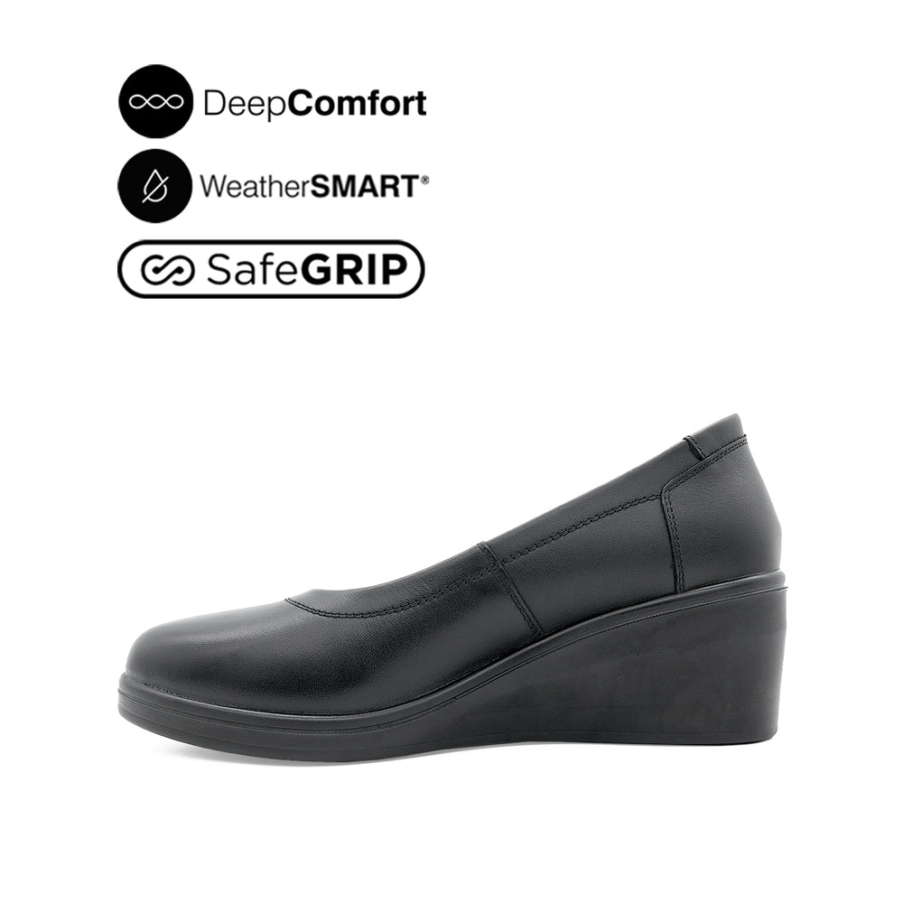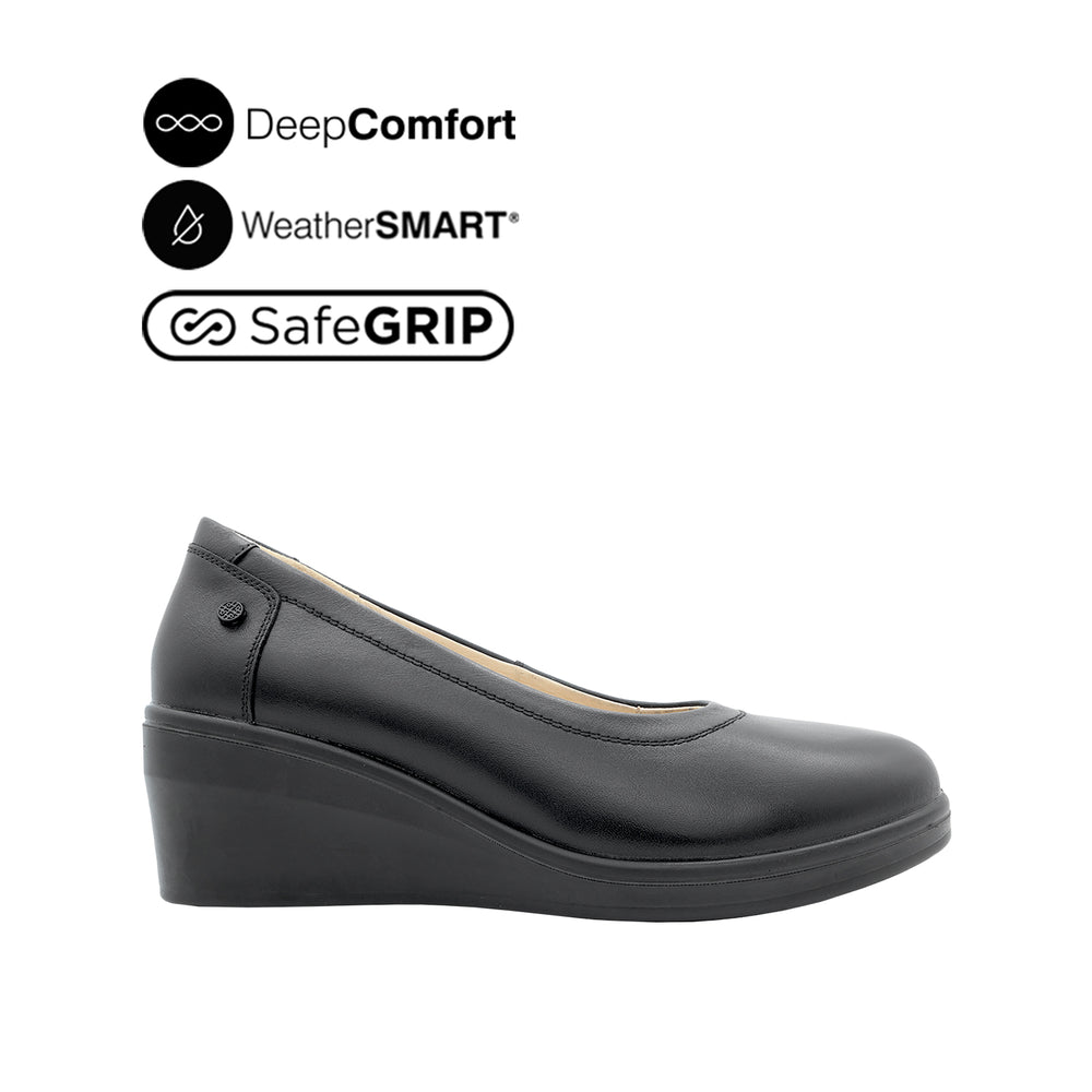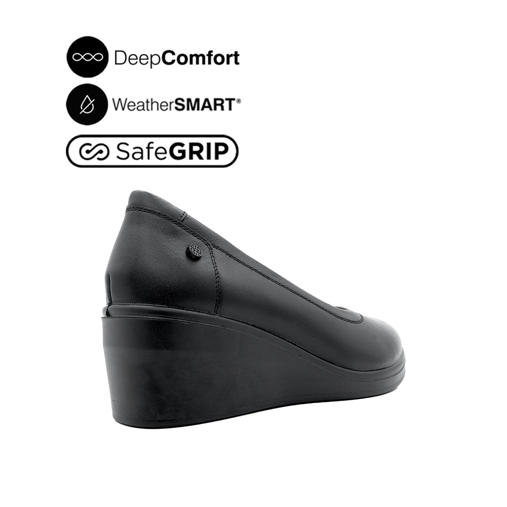 Paris Wedge Plain Toe Women's Shoes - Black Leather Waterproof