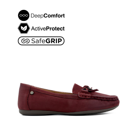 Georgie Mocc Bow Women's Shoes - Burgundy Tumbled Nubuck