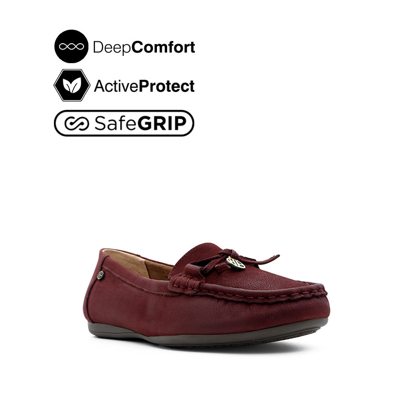 Georgie Mocc Bow Women's Shoes - Burgundy Tumbled Nubuck