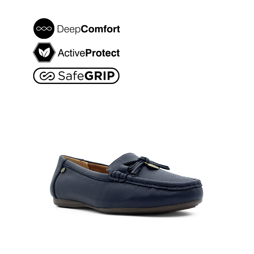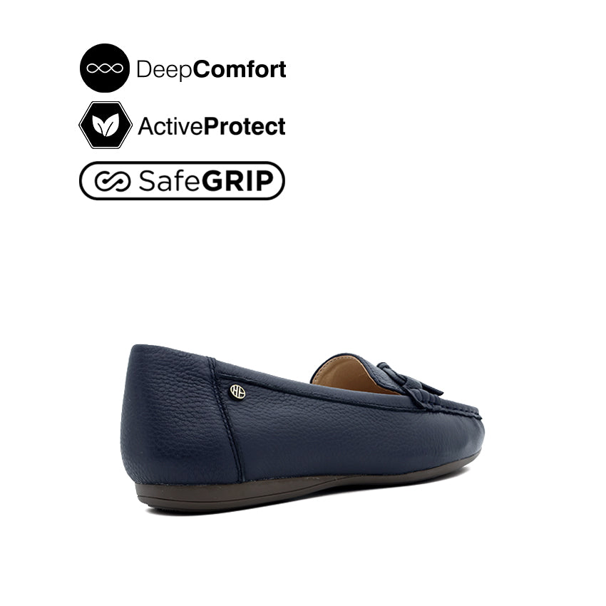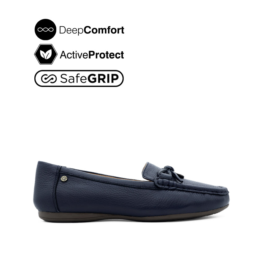 Georgie Mocc Bow Women's Shoes - Navy Tumbled Leather
