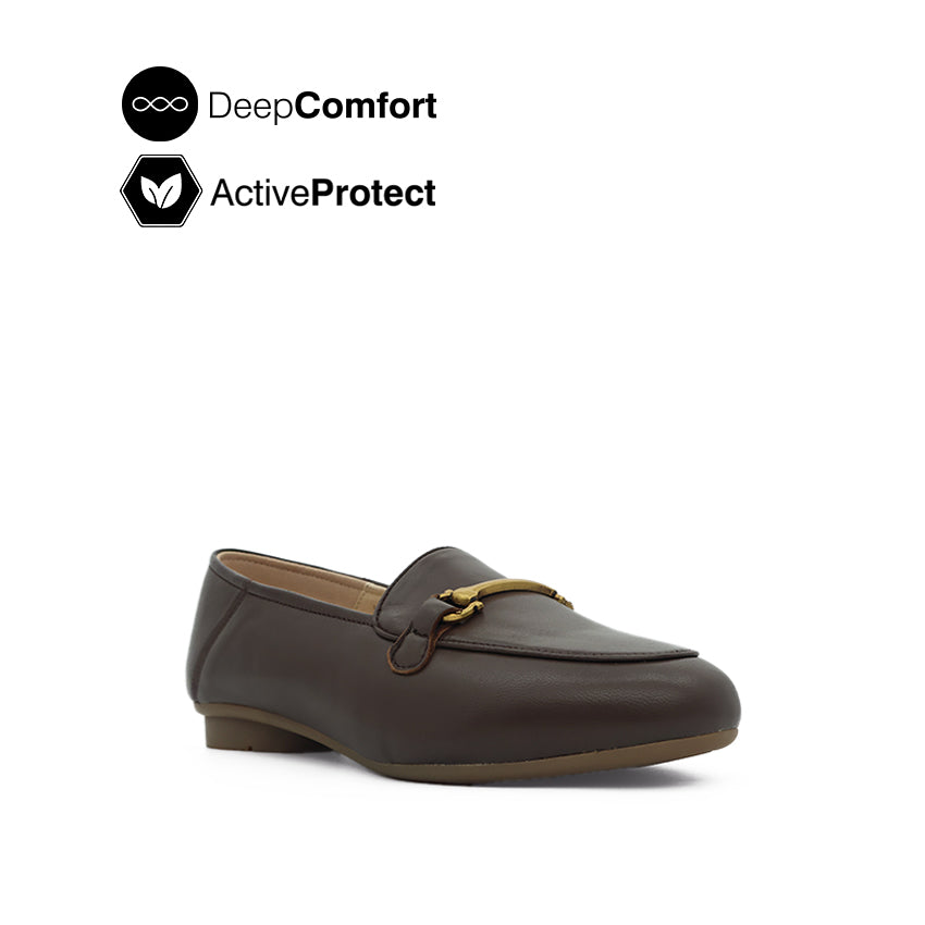 Gwin Metal Bit Loafer Women's Shoes - Brown Leather