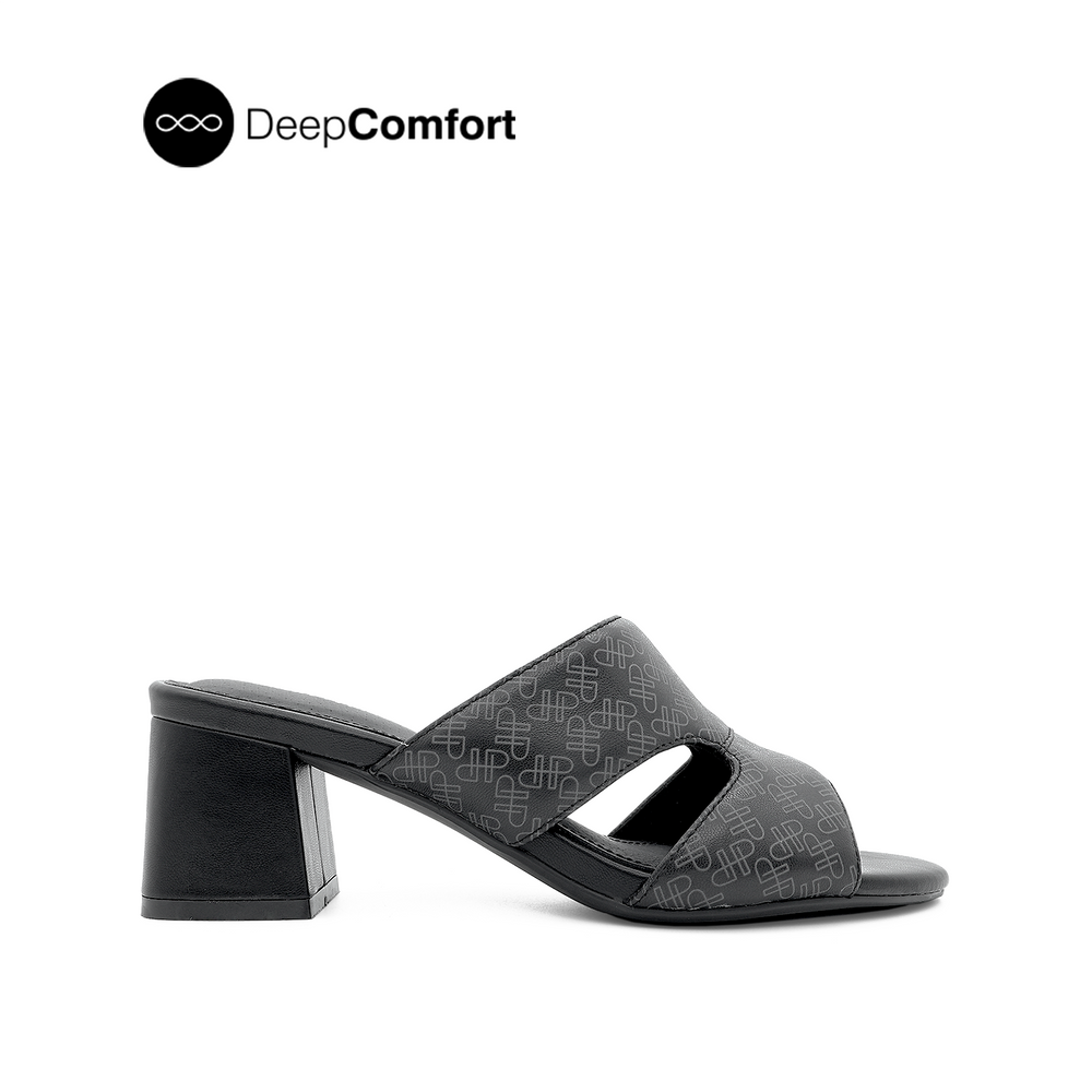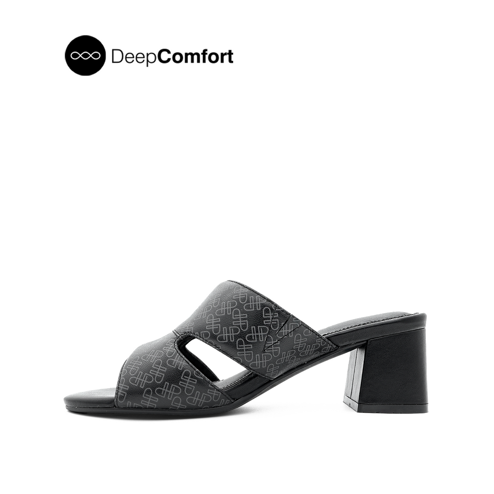 Noelle Women's Sandals - Black Monogram Leather