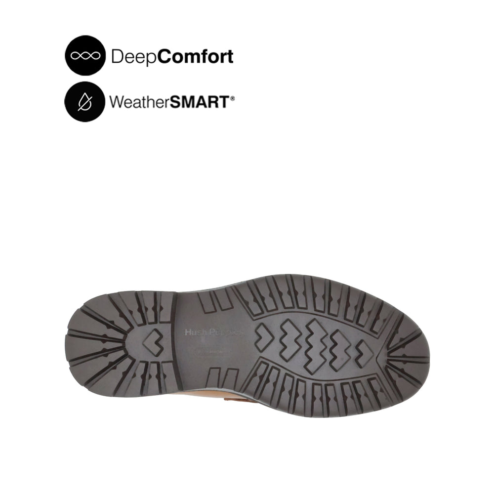 • WeatherSMART™: a combination of direct-injected outsoles and seam sealed waterproof leathers to keep feet dry without sacrificing comfort or style
