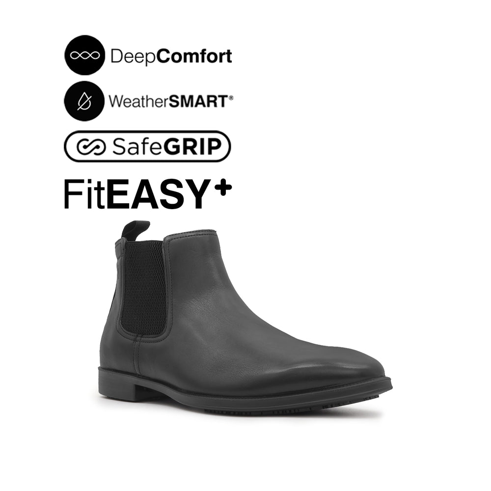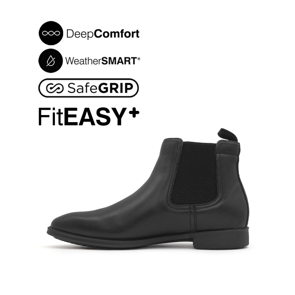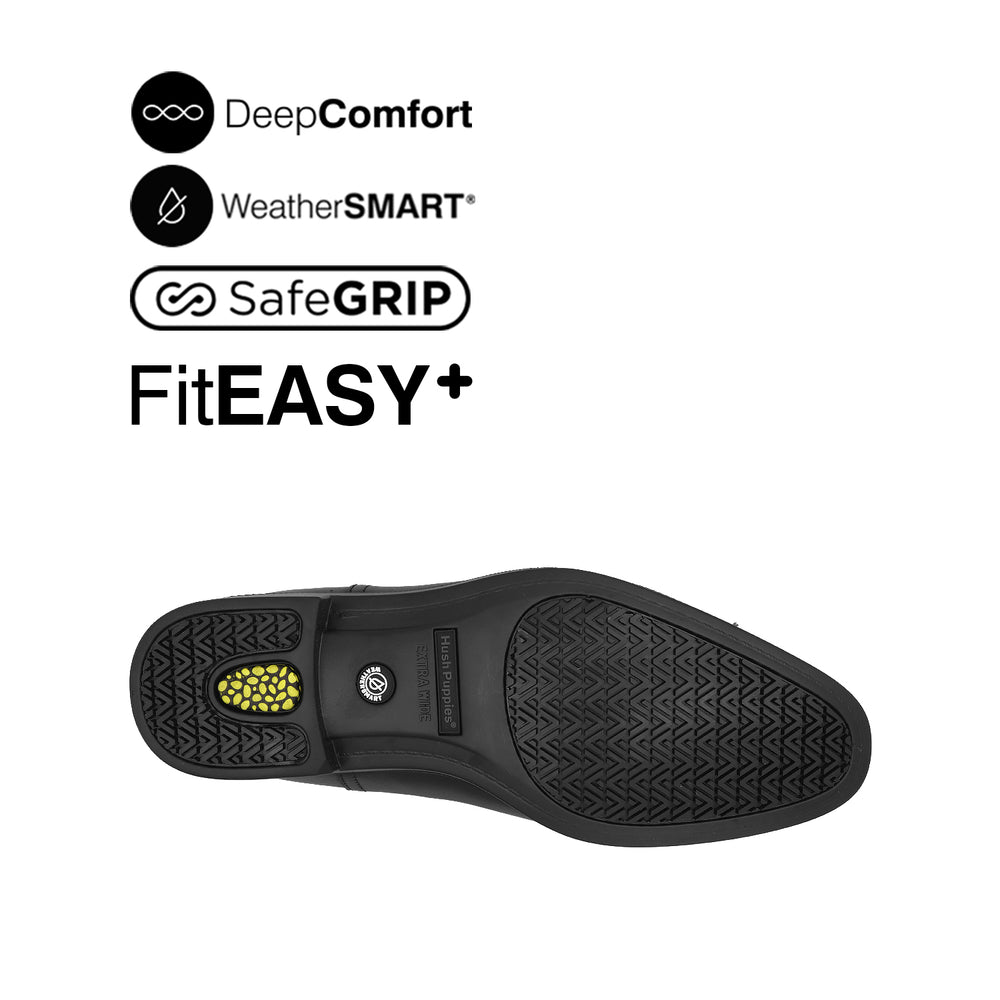 • WeatherSMART™: a combination of direct-injected outsoles and seam sealed waterproof leathers to keep feet dry without sacrificing comfort or style
