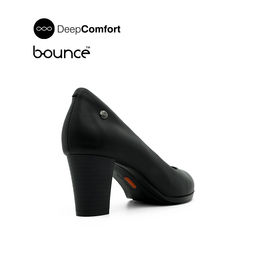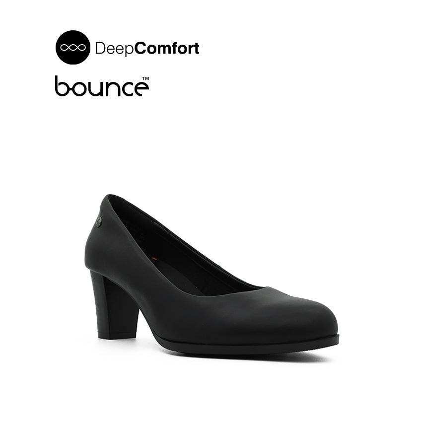 - Slip-resistant rubber outsole combined with block heel -Bounce® outsole releases energy with each step by absorbing and redistributing shock