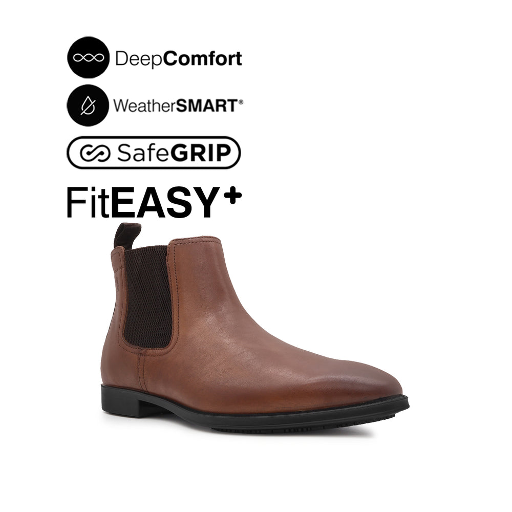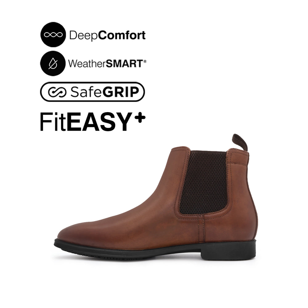 • WeatherSMART™: a combination of direct-injected outsoles and seam sealed waterproof leathers to keep feet dry without sacrificing comfort or style